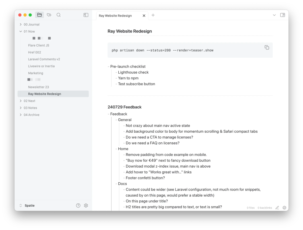 Sebastian shares with us how they take notes in Obsidian. "For the past year, Obsidian has been my note-taking companion. I don't care about fancy features like backlinks, canvas… I like Obsidian because it's fast, minimal (up to you!), customizable, works with Markdown files, and has a good enough mobile app.