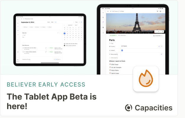 The iPad and Android tablet version of the app is now available. This is currently only available to Believers for now, but I am sure in in good time it will be released to others too. If you are a believer, check your email on how to download it or get in touch with the Capacities team to obtain access - it is worth it!