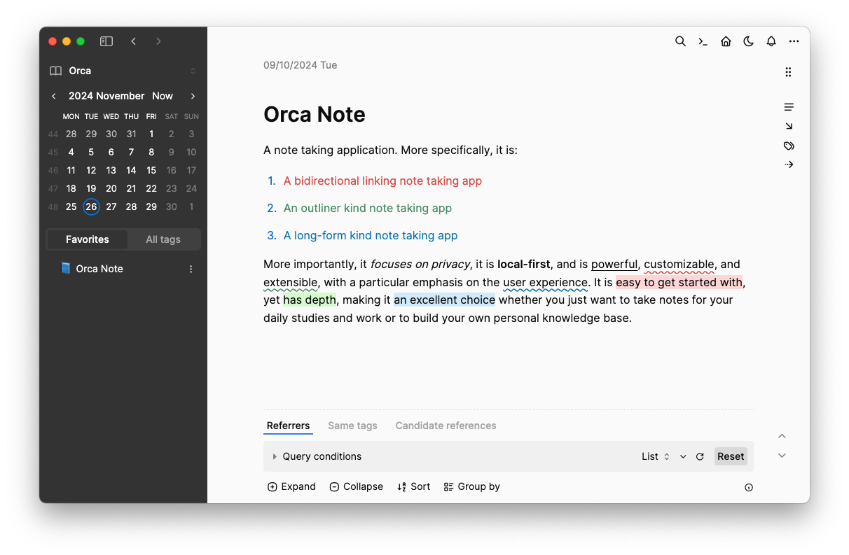Privacy First: Everything is stored locally in Markdown files for offline access.