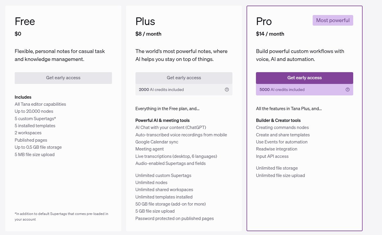 Tana Plus - A (new plan with lower AI credits. Bit of a cheaper version than pro and without the full integrations.