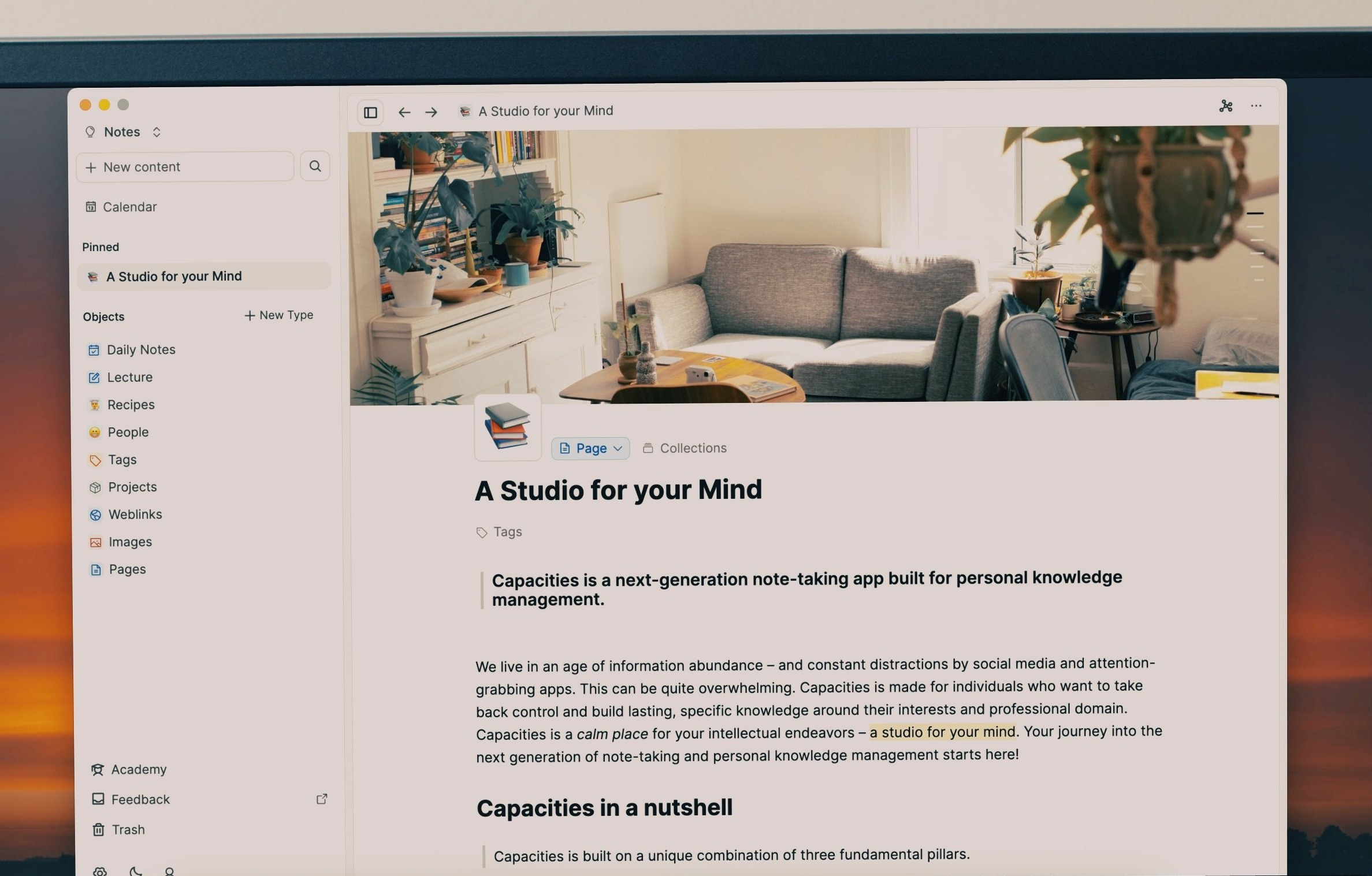 I can be productive right away using Capacities, unlike Obsidian, which needs some tuning. It works whether I oversee research, organize tasks, or collect inspiration.