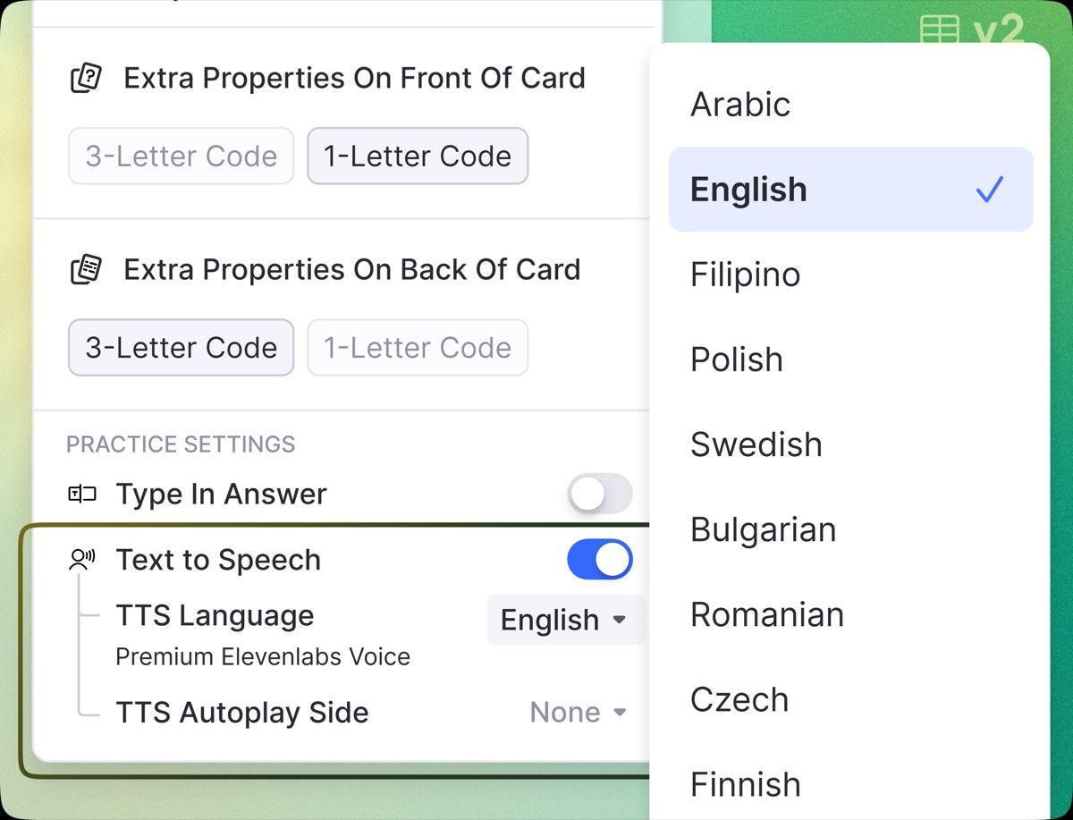 In the latest update, you can enable text-to-speech using premium elevenlabs voices on your tables. These read with accurate pronunciation - perfect for language learning or learning vocab.