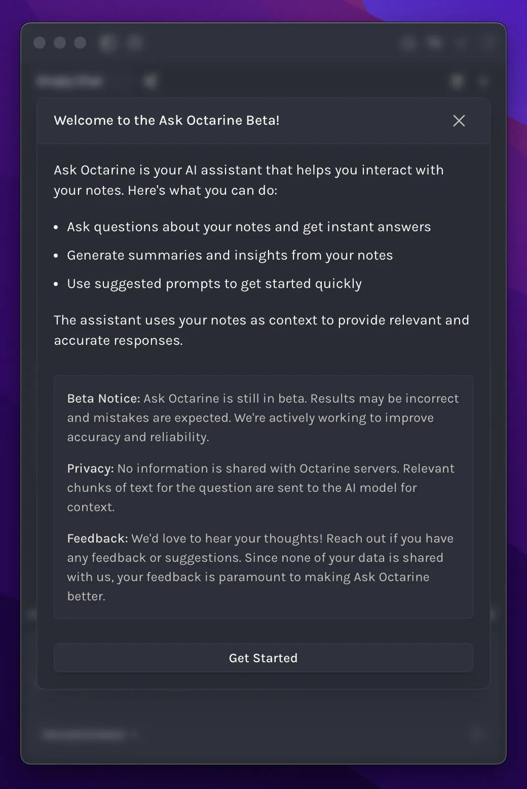 Octarine is looking to add AI capabilities so that you can interact with your notes. It will be really interesting to see how this is implemented and how successful Ask Octarine will be at getting the context from your notes.