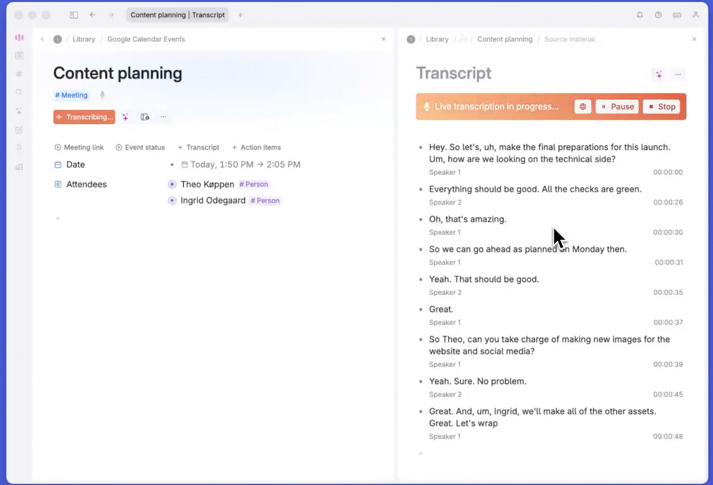 We’re excited to open up Tana Meeting Notetaker - our new bot-less, live meeting transcription feature, available in the Tana Desktop app (Mac + Windows). Based on your feedback on the meeting agent, we have been working to make it easier to start taking meeting notes, without requiring to add an in-call bot.