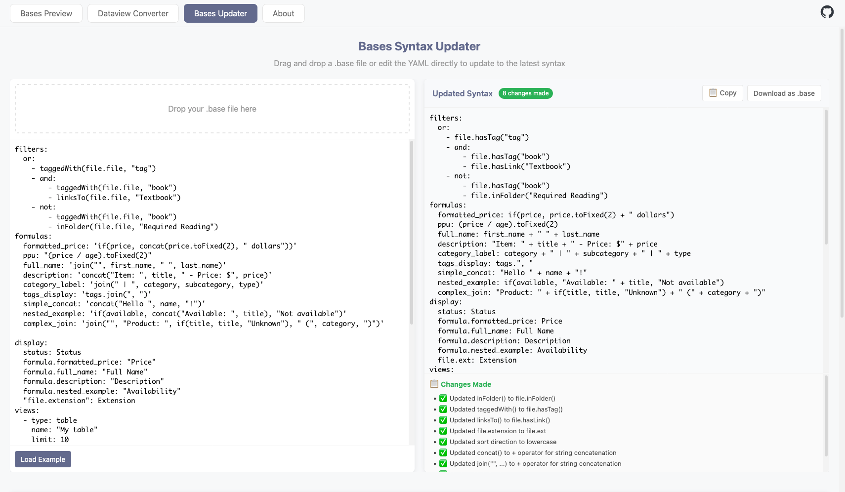 Bases has been out for only a couple of weeks, and there are already Dataview to Bases Converters allowing you to convert your Dataview TABLE queries to Obsidian Bases format.