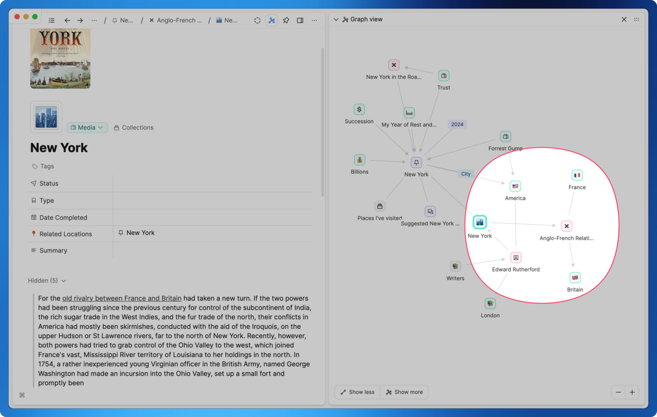 Beth did a good write-up on the graph view, and wanting to take notes about the connection between two other notes.