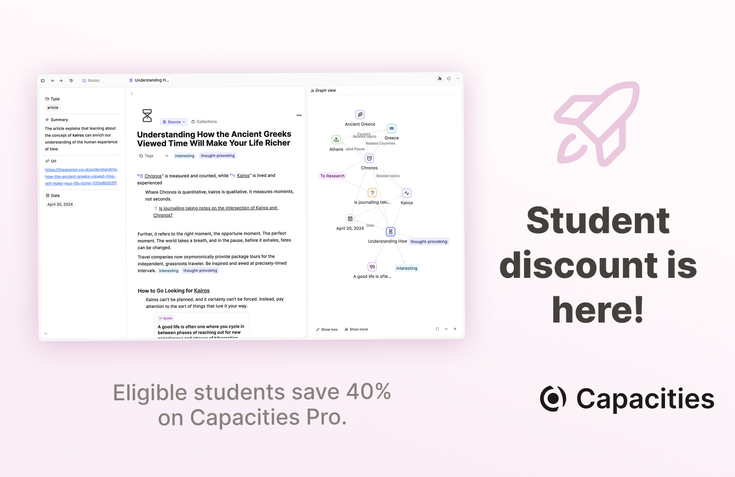 We’re now in a position to offer a 40% discount on our annual Capacities Pro or Believer plan for currently enrolled students.