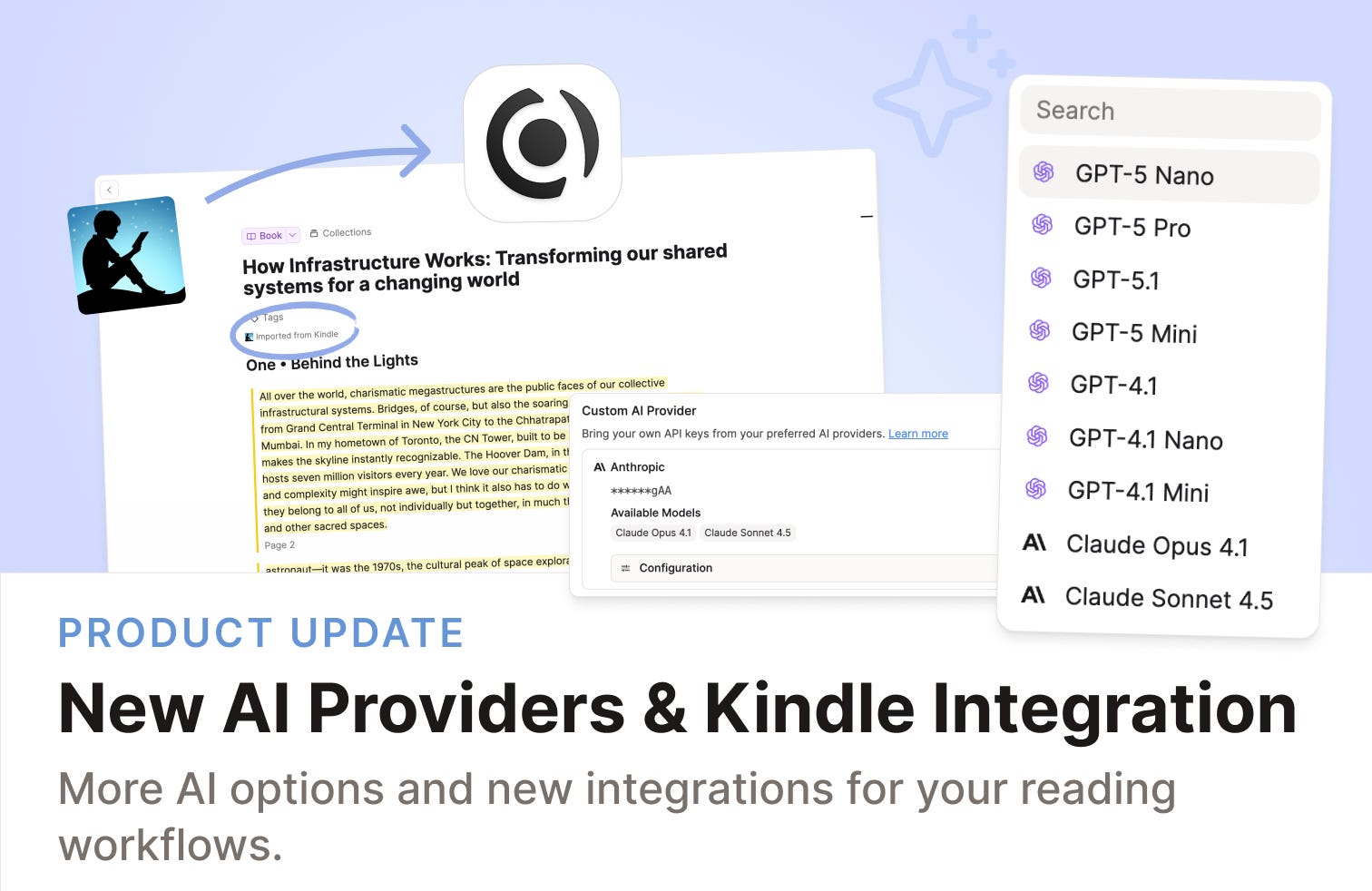 Choose your own AI Model Provider - You can now use Capacities AI with other model providers than OpenAI. You can now plug in your own API keys from OpenAI, Anthropic, Google, Mistral, or xAI.