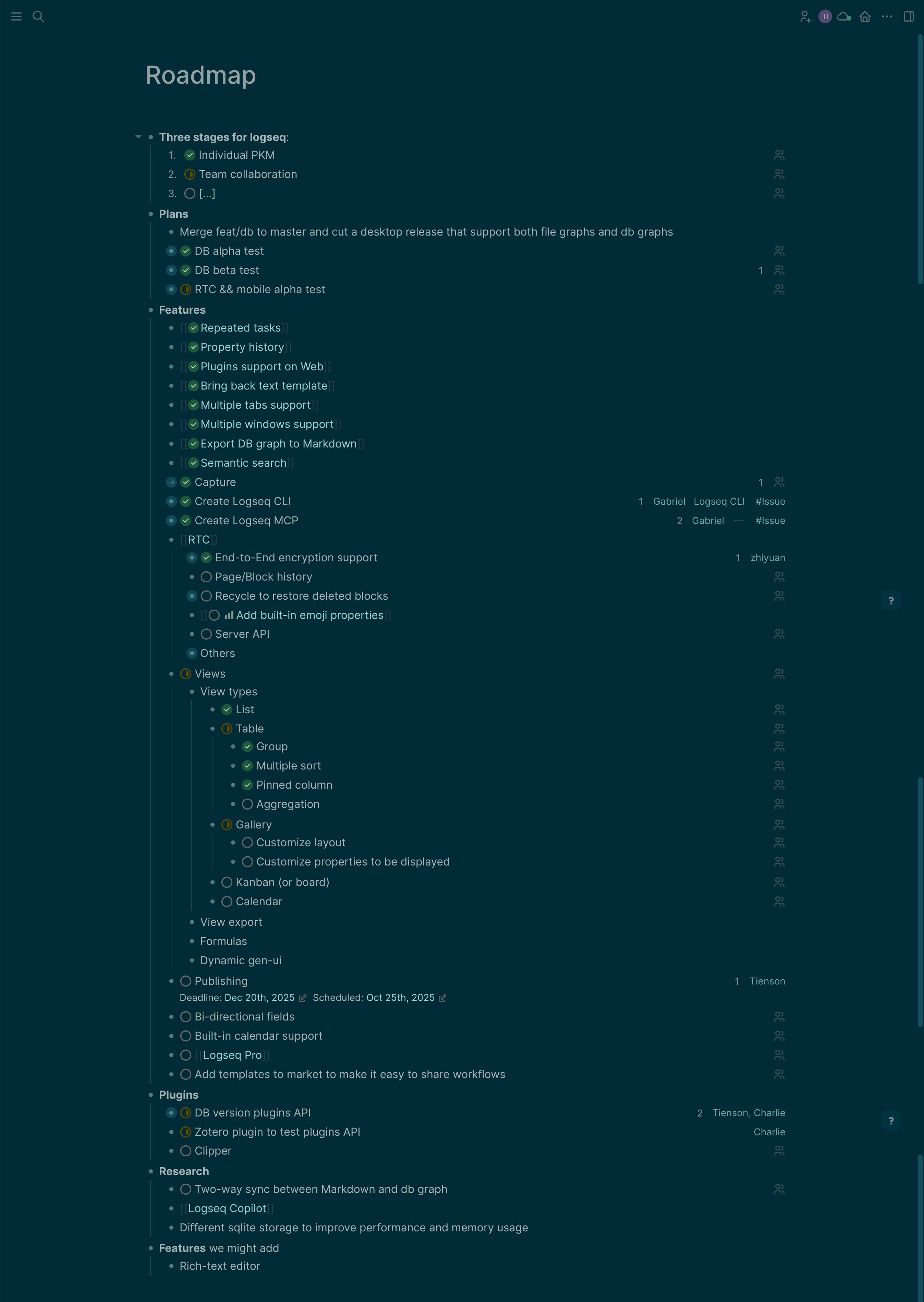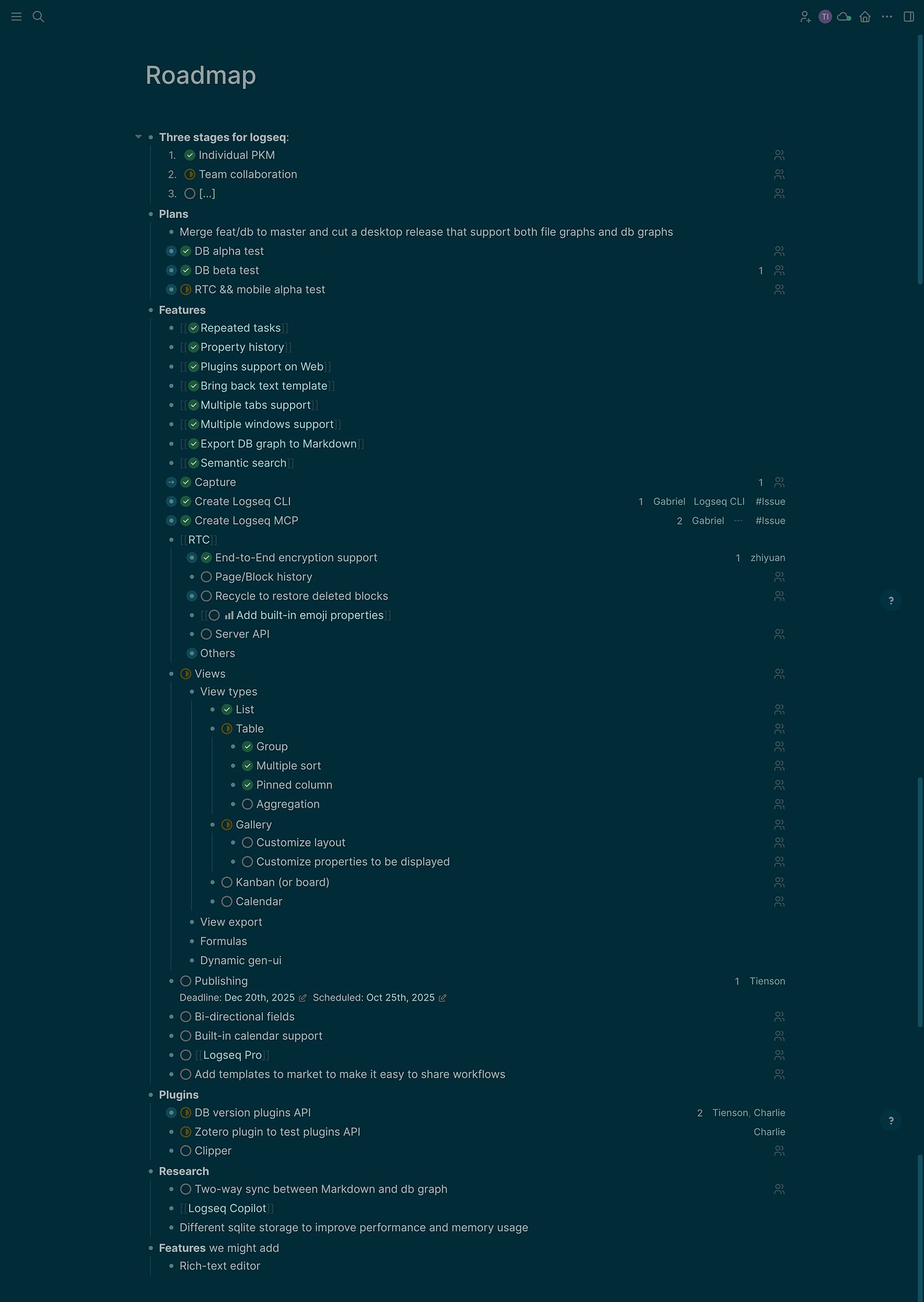 https://discuss.logseq.com/t/logseq-product-roadmap/34267