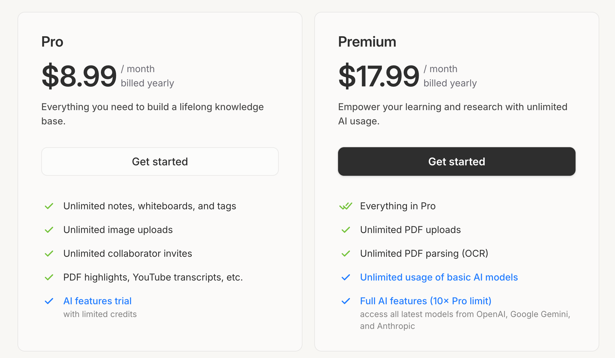 Collaborating with Google to give all Pro subscribers and free trial users a monthly AI credit. You can now chat with the most advanced Google Gemini models at no extra cost. If you hit the monthly limit, you can upgrade to the Premium Plan, which gives you 10× the Pro usage limit plus access to all the latest models from Google, OpenAI, and Anthropic.