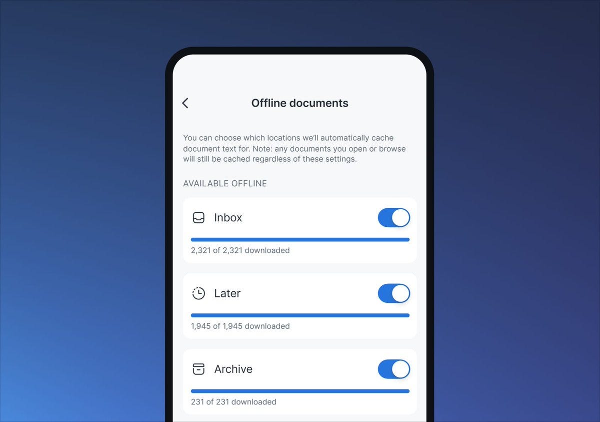 Offline v2 - Your Library content now downloads for offline reading much faster and more reliably, with clearer controls and a dedicated Offline Documents screen.