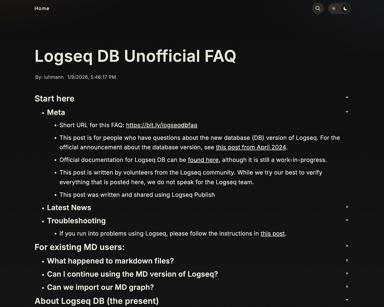 Luhmann updated the Unofficial FAQ and moved it from the forum to Logseq Publish, and it looks beautiful!